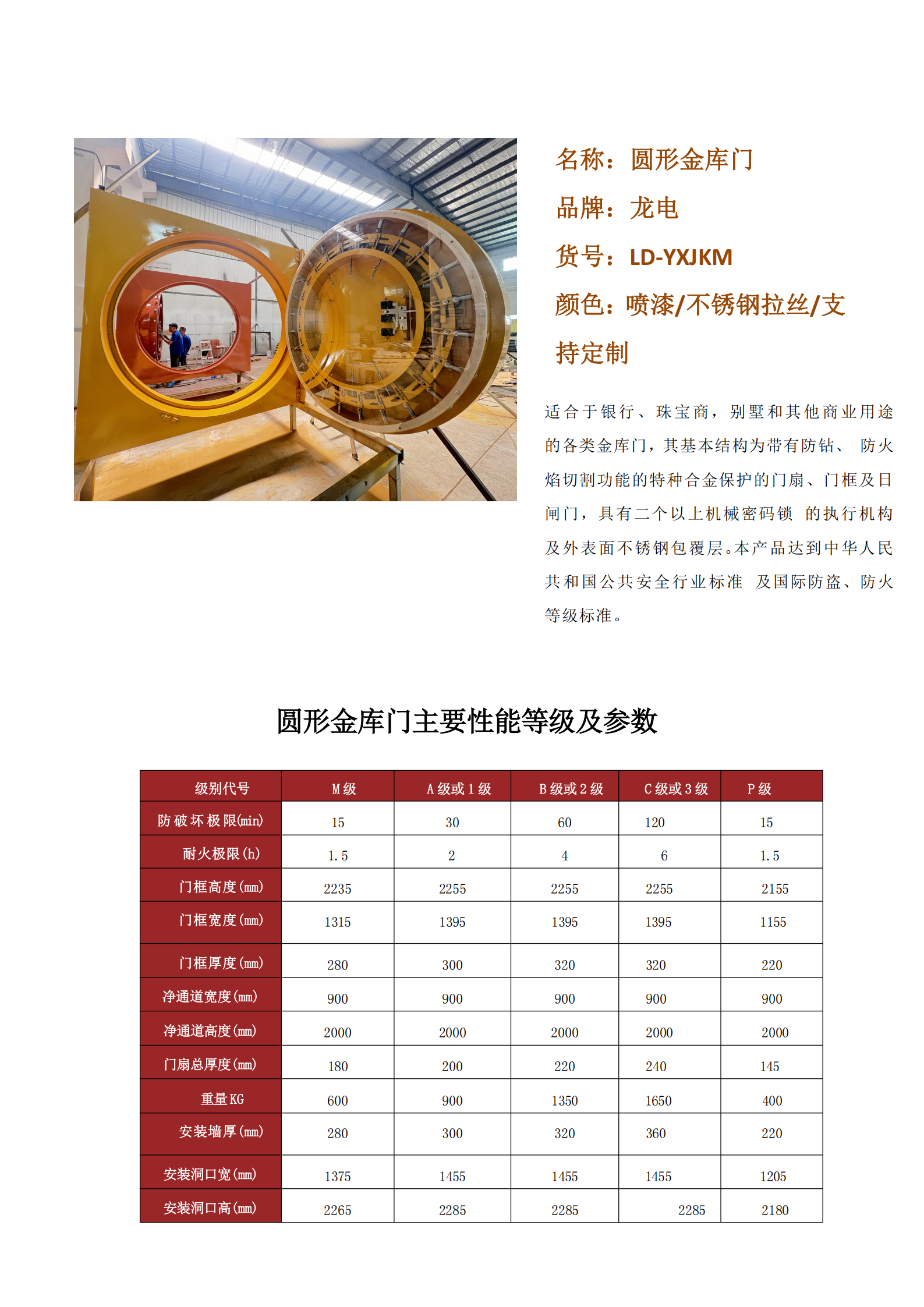 产品名称:龙电-银行圆形金库门